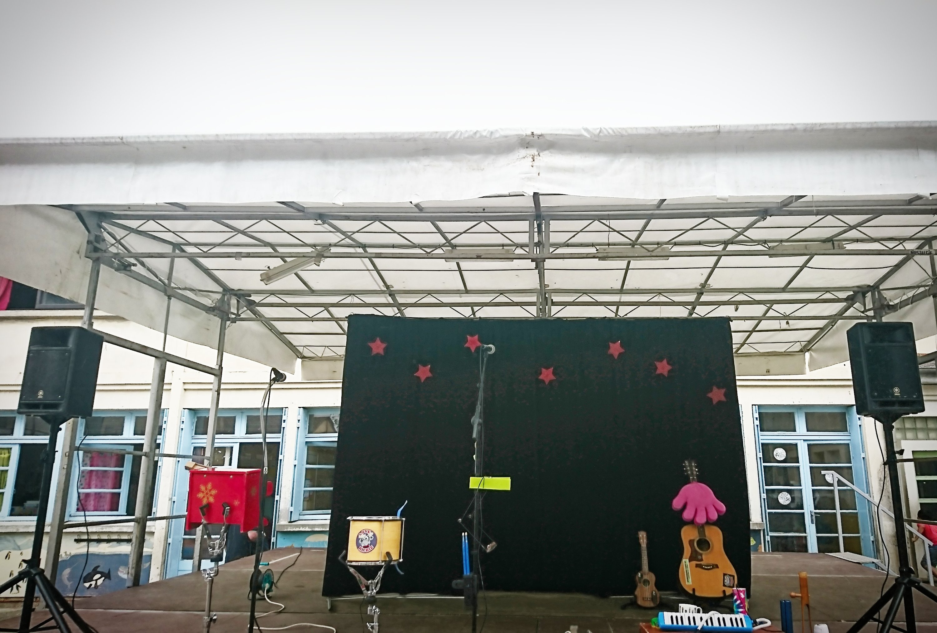 Prêt pour la première représentation du jour avec LA SYMPHONIE DE LA VALISE 1 dans la cours de l’École de Castelsarrasin (82) 🌟