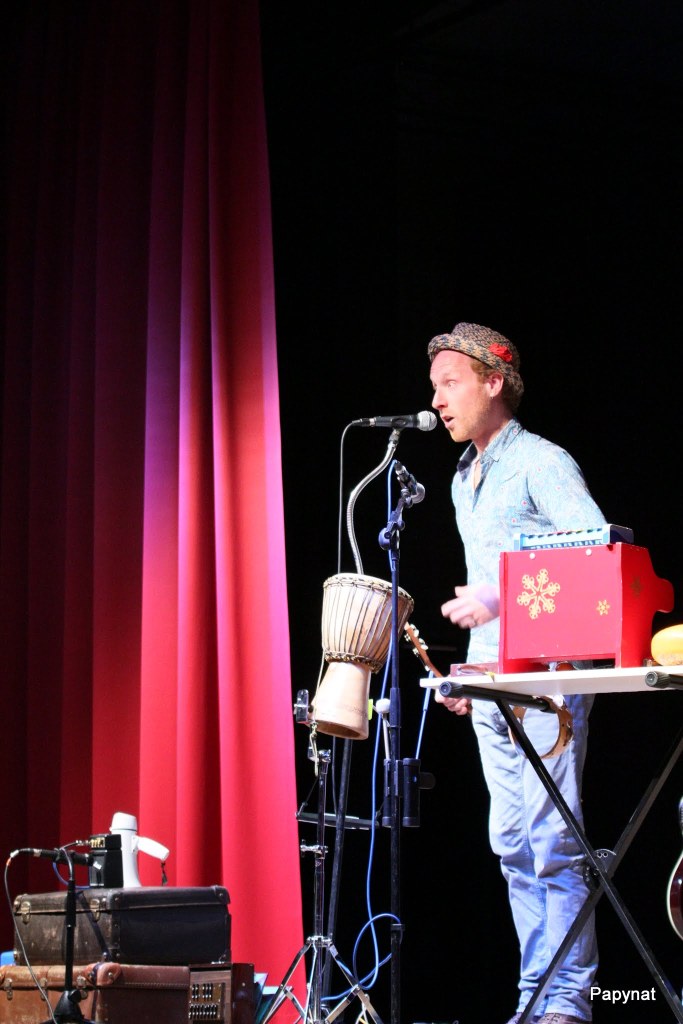 Frederick vous propose la recette du bonheur servie en live. Il mélange en musique et avec humour ses chansons, des reprises et compositions instrumentales assaisonnées d’instruments insolites et mélodieux piochés dans une malle magique. Lorsque le tout est prêt, le public tape des mains en rythme et tous les pieds, petits ou grands, bougent énergiquement. Frederick joue de la guitare (folk et électrique), du ukulélé, d’une batterie magique, du mélodica, de l’harmonica, de la shruti box, de percussions mélodiques…