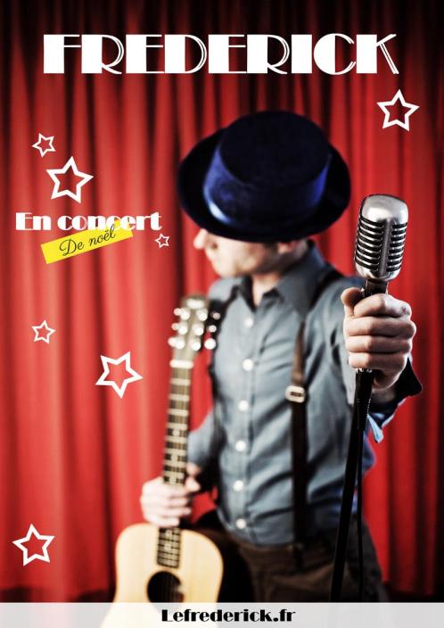 Frederick vous propose la recette du bonheur servie en live. Il mélange en musique et avec humour ses chansons, des reprises et compositions instrumentales assaisonnées d’instruments insolites et mélodieux piochés dans une malle magique. Lorsque le tout est prêt, le public tape des mains en rythme et tous les pieds, petits ou grands, bougent énergiquement. Frederick joue de la guitare (folk et électrique), du ukulélé, d’une batterie magique, du mélodica, de l’harmonica, de la shruti box, de percussions mélodiques…