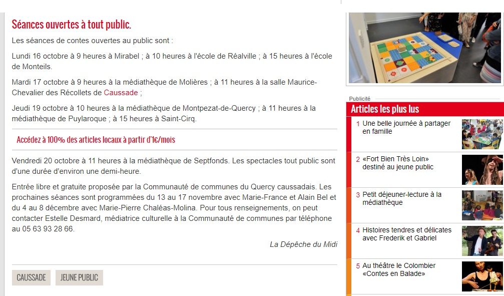 Réservations en ligne ici – Renseignements au 05 61 73 18 51