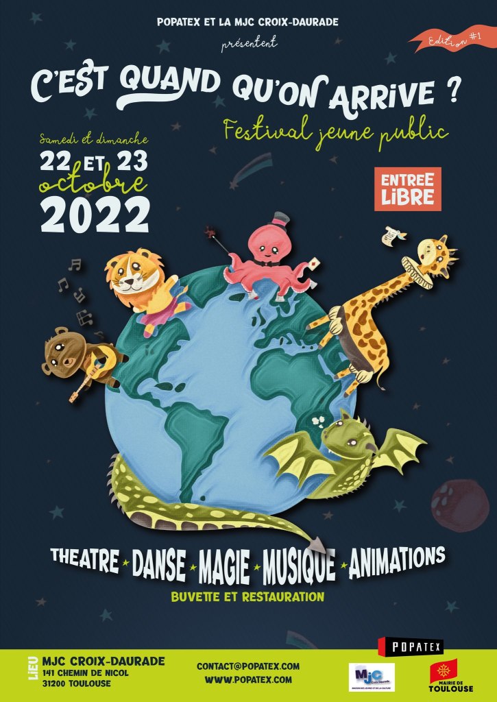 L’Association Popatex organise son premier Festival pour les enfants ! Ce festival me tient à coeur car Popatex est une bande copains qui m’accompagne depuis en tant qu’artiste jeune public et cela depuis mes débuts ! En plus de mon spectacle il y aura plein d’autres artistes copains de l’Association et des animations en extérieur !